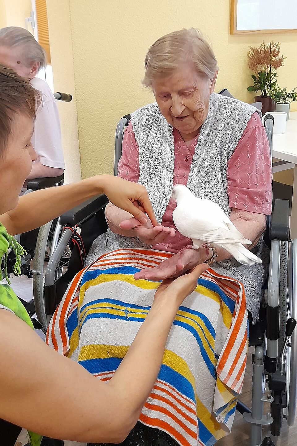 Ende August besuchte uns Frau S. Wagner wieder mit ihren Tieren. Sie weckte damit viele schöne Erinnerungen bei unseren Bewohnerinnen und Bewohnern.